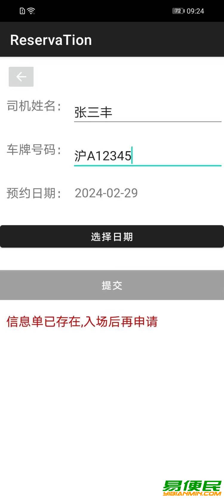 (7)司机可自助查询当前预约状态,显示如图示: